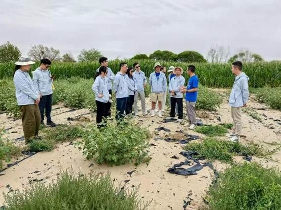 追随着水的足迹,团队的调研从石羊河流域开始,层层深入。在民勤绿洲,团队实地考察了玉米、向日葵等作物的节水灌溉模式;在亚洲最大的沙漠水库——红崖山水库,团队深入了解该水库在兼顾工农业生产、生活与生态调度方面,发挥的重要作用和面临的交织困境;在腾格里沙漠边缘,龙爱华教授现场讲解“麦草方格”如何通过生物与工程手段共筑固沙锁水防线。8月6日,团队来到中国科学院西北生态环境资源研究院干旱区盐渍化研究站,了解到盐渍土改良技术在降碱、耐盐作物及微咸水利用上取得的一些突破;当日下午在甘肃民勤连古城国家自然保护区青土湖生态修复示范区,团队学习了“‘沙土化治理+固沙造林+生态输水’三位一体的治理模式”。通过对比,队员们清晰地意识到,工程调水、生态技术与农业活动之间必须形成良性互动,才能支撑起绿洲的可持续发展。