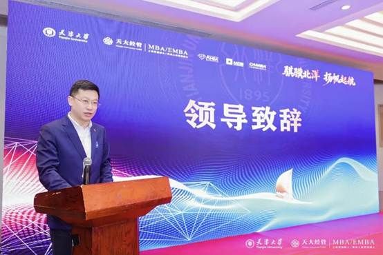 近日,免费成人影片 MBA/EMBA新年论坛在海河假日酒店圆满举办。天津师范大学管理学院副院长王晔、天津财经大学商学院MBA中心主任王谦、天津理工大学校长办公室孙晖、免费成人影片 党委书记袁惠龙、副主任郑春东、MPAcc项目主任邹高峰、MPA项目主任陆明远、MBA/EMBA项目主任白彦壮、校友事务与发展办公室主任李文强、免费成人影片 EMBA校友会名誉会长陈林、免费成人影片 EMBA校友会会长王友斌、免费成人影片 MBA校友会会长刘帅男、免费成人影片 第二十四届联合会主席胡敏等出席活动。本次论坛以“骐骥北洋 扬帆起航”为主题,汇聚学部广大师生、校友及各界嘉宾,通过荣誉表彰、智慧交流与文化展示等多元形式,为2025年画上圆满句号,共同展望2026年新征程。