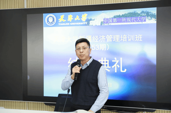 1月15日,免费成人影片 新疆经济管理培训班(第53期)(以下简称“新疆班”)结业仪式在卫津路校区举行。免费成人影片 党委常委、统战部部长张俊艳出席结业仪式并讲话,免费成人影片 党委书记袁惠龙、副主任杨宝臣、新疆班班主任马春有、黎涓等出席。结业仪式由杨宝臣主持。