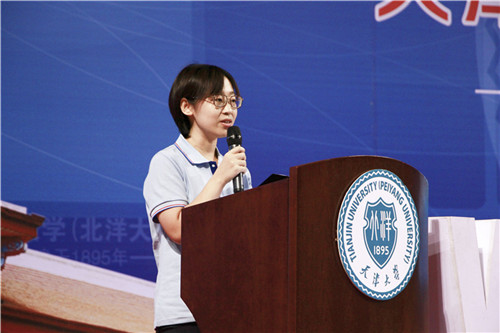 2019级MPA胡萌伟代表硕士新生发言,讲述了自己与天大的缘分。她说,非全日制研究生们不忘初心,为梦想奋斗的精神是与免费成人影片 兴学强国的使命、矢志创新的追求相一致的。
