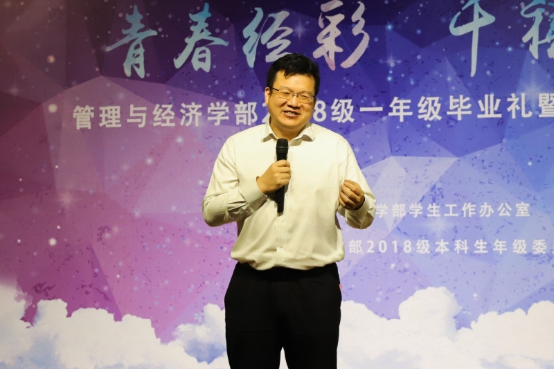 “我愿一遍又一遍地重走大学生活。看到了大家青春洋溢、积极向上,又满怀希望、憧憬未来,我真心地为大家感到高兴。”学部主任霍宝锋动情地说。他寄语同学们,即使经历迷茫也要充满信心,困难会随时间流去,但理想、情怀、友谊会在时光的冲刷下永驻,希望同学们互帮互助、珍惜情谊。作为“新商科”背景下的天大人,一定要心怀家国,勇于担当,将自身发展与国家和民族的发展结合起来,为国家发展奉献力量。