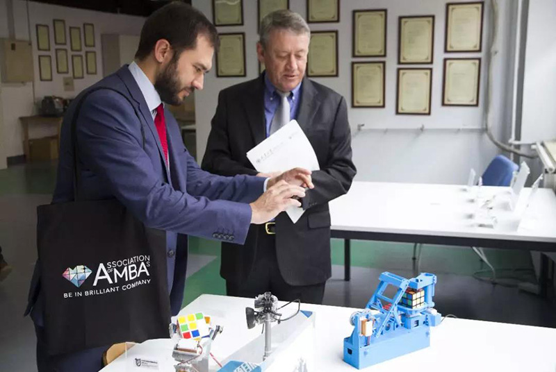 AMBA认证专家饶有兴致地参观宣怀学院的创业教育基地
