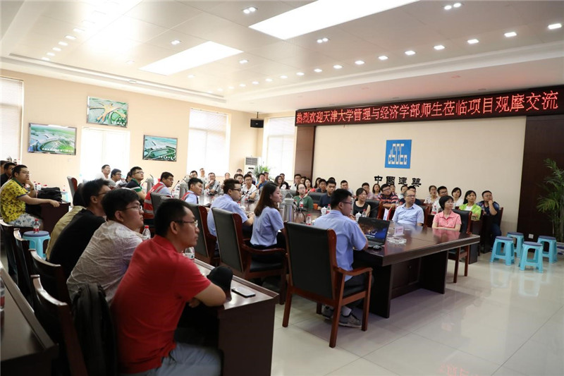 师生聆听项目管理人员作项目介绍