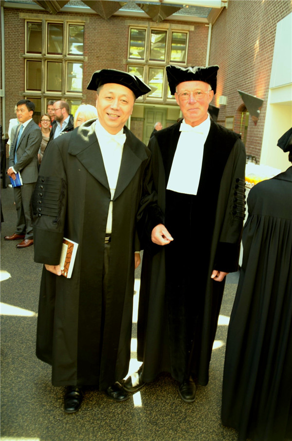 (与当年博士学位导师Henk Folmer教授参加荷兰格罗宁根大学经济学博士答辩后合影)