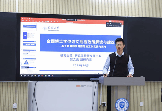 贺文杰结合在教育部借调期间的工作实践与深入思考,系统解读了全国博士学位论文抽检工作的政策背景、制度内涵、实施成效及发现问题,重点围绕抽检发现的典型质量案例进行了细致剖析,增强了与会导师对国家抽检政策体系及其重要作用的认识。他结合学部研究生质量保证体系建设现状与人才培养中的实际问题,建议导师针对不同类型研究生,分类实施更精细化的质量保障及提升措施,重点加强专业型博士生培养质量保障体系建设。