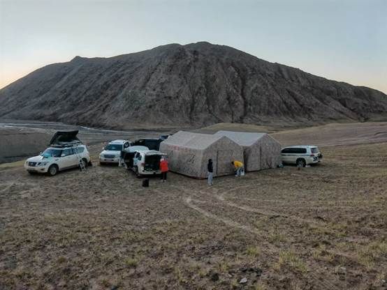 完成河西走廊考察后,调研团队马不停蹄地赶赴新疆开展考察。8月18日,团队从新疆库尔勒市区出发,一路驱车深入罗布泊边缘,最终抵达小河墓地旁的阿拉干营地——这是此次无人区考察的首个露营点,也是为队员适应高原露营生活特意安排的“过渡站”。小河墓地是夏商时期青铜时代的遗址,静静坐落于若羌县孔雀河下游河谷以南约60千米的广袤荒漠之中。夜幕降临,队员们合力搭建帐篷,待营地灯火亮起,浩瀚星河铺满荒漠上空,队员们围坐于篝火旁交流对后续考察的期待,准备开启下一段科学远征之旅。