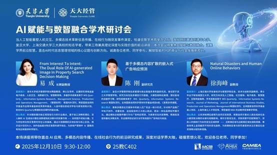 主旨演讲环节,三位学者分别从AI生成内容的应用机制、多模态广告传播策略、灾害情境下的在线行为等维度,呈现了信息管理领域的前沿探索。
