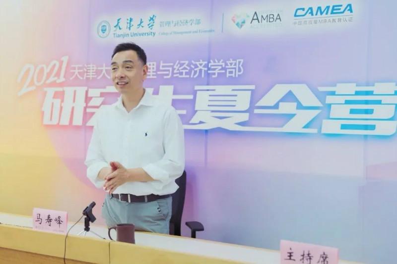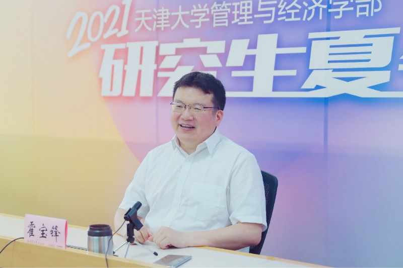 霍宝锋为本次夏令营的营员们作了“新时代,新经管,新商科”主题讲座。霍宝锋带领营员们重温了天大与学部的历史沿革,展示了学部的特色工作及成果,分享了杰出校友事迹。最后,他以商科教育转型作结,指出应面向未来商科发展趋势培养人才,为商科内涵进行了新的定义。