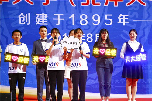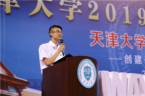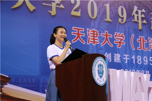 2019级经济管理实验班罗秋莲代表本科新生发言,她说,是天大人让她发现青年力量的伟大,是经管人让她相信自己也可以铸就卓越。她郑重宣誓,作为新时代青年,定将立天大志向、展天大胸襟、承天大责任。