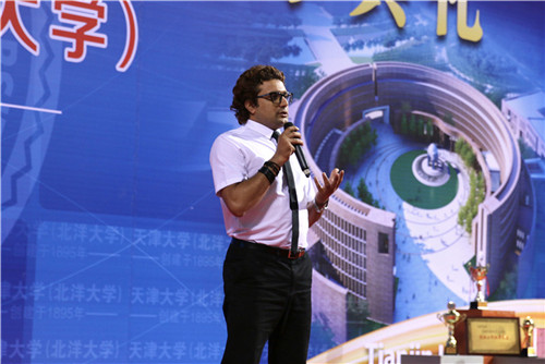 2018级IMBA爱德华代表国际生发言,他表达了来到天大读书的荣幸和对老师、同学的感恩。
