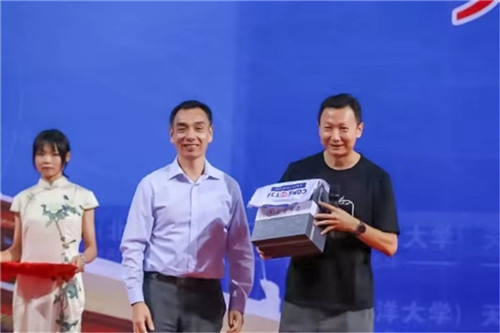 随后,学部党委书记马寿峰为张光明校友送上学部师生精心制作的免费成人影片 纪念牌和2019级院衫表示感谢。