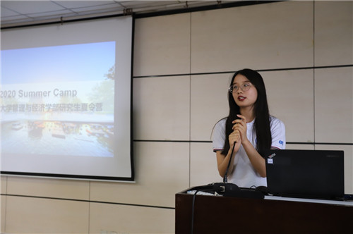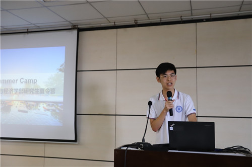 学部2018级优秀硕士研究生代表张子川上台发言,为大家介绍了在学部的学习生活环境和社团组织活动。他表示学部不仅有浓厚的学习氛围,同学们还可以在科研学习之余,通过参加各种学术竞赛和实践活动丰富在校生活,拓展视野,培养能力,身体力行地践行“崇实事而求是,践商道以化成”的学部使命。