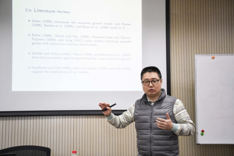 Hanjoon Jung副教授的研究聚焦于腐败对劳动市场与经济增长的影响。索罗模型分为离散时间模型与连续时间模型,该研究以离散时间模型为基础模型,假定规模收益不变、完全竞争和无外部性条件下,Jung的理论模型得出:在平衡经济增长中,达到稳态时每个人(每个人既是消费者亦是劳动者)都有更低的期望;在正常经济体中劳动者的数量比有腐败存在的经济体劳动者数量更多,而且开放经济也无法完全解决这个问题,因为它的影响有限。研究不但可以解释一些发展中国家低速增长的原因,还对中等收入陷阱的发生有理论上的阐述。