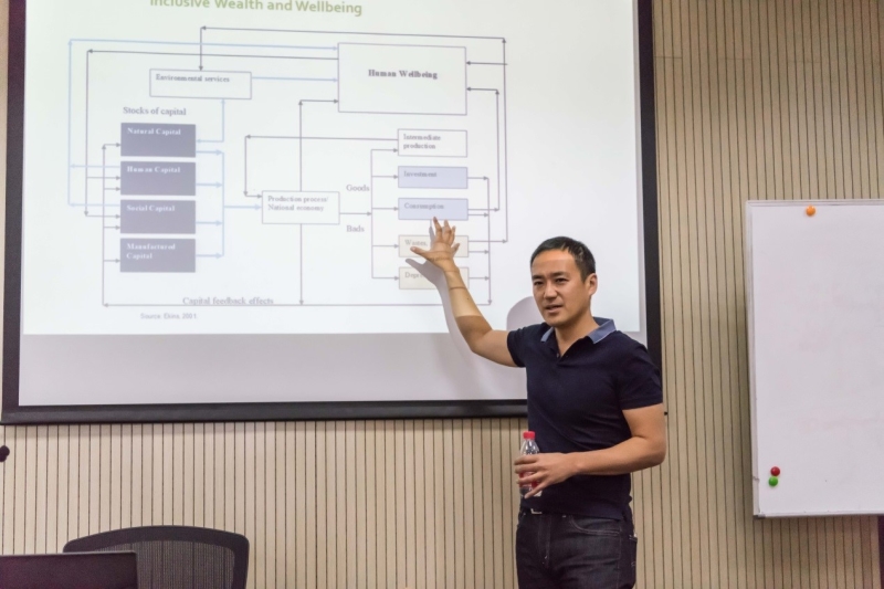 Moinul Islam助理教授采用包容性财富法评估了自然资本和生态系统服务的货币价值。他指出自然资本的测量虽然存在困难,但在包容性财富和可持续发展的框架下,自然资本的影子价格可以表达为其对社会福利的边际贡献。然后他将研究视角聚焦在自然资本下的可再生资源中的渔业资源,着重对比了渔业资源丰富的十个国家,发现在1990-2015年期间,除加拿大和西班牙,其他国家的捕捞量虽逐年递增但渔业的资本存量实则在减少。最后建议将自然资本和生态系统服务的货币估值纳入可持续决策中,能够全面衡量经济的生产基础,确保国家的预期产出。