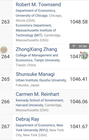(世界上最大的经sss济学论文库RePEc/IDEAS基于对全球经济学家在国际期刊上发表的论文按属于每位作者的页数统计,Managi教授以折算成作者本人在国际期刊发表1046.41页,位列全球第265位)