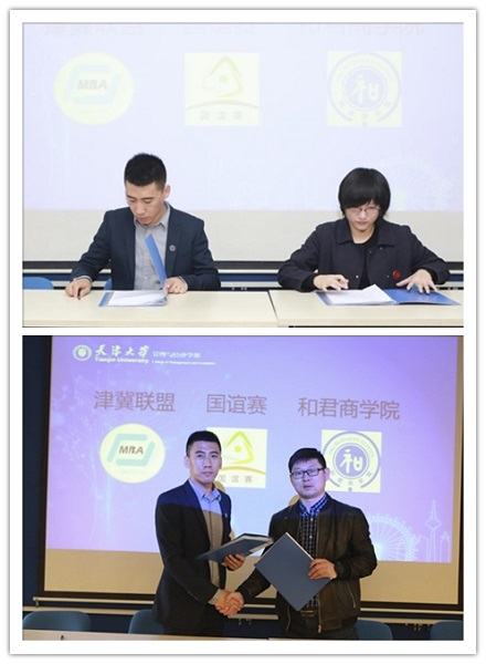 王建超与和君商学院吕乔璐、国谊赛陈海涛进行签约,日后津冀联盟会与多方达成深层次合作,增加MBA院校多元化的活动,为MBA人打造更健康更广阔的活动空间。