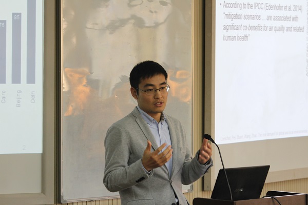 对外经济贸易大学国际经济贸易学院副院长、孙冶方经济科学奖获得者裴建锁副教授做了题为“全球与地方环保需求——基于北京的减缓气候变化的实验研究”的报告。中国对于减缓气候变化这一公共品的贡献不仅有公共品的属性,还具有减少雾霾、改善居民健康等协同效应,这可能在一定程度解释了其在相关政策讨论中的积极姿态,但这种动机是否有微观基础呢?裴教授与合作者采用准田野的实验方法,在保证内部有效性的同时,更大限度的兼具外部有效性。通过对北京受试者关于二氧化碳排放权支付意愿、价格弹性等方面的研究,得出了以下结论:首先,该研究首次揭示了气候减缓措施的协同效应这一事实可以从个体决策中观测到,但愿意支付的价格较低;其次,为了区分公共品和当地环保需求的支付意愿,设计了北京和深圳两地的碳排放权购买选项,对愿意支付价格的最低值给出了估计,结果显示北京居民对当地环保需求有更高的支付意愿;最后,估计了不同因素对支付可能性的影响并对价格弹性进行了测算,观测到发达国家(弹性较低)与发展中国家(弹性较高)价格弹性相差较大这一问题,拟在接下来的研究中进行深入探讨。在展示的过程中,裴教授简要介绍了理论探讨公共品的纯公共品和准公共品属性对支付意愿的影响(碳减排是典型的具有协同效应的公共品)以及真实支付意愿(通过实验的方法得出)和填报的支付意愿区别与联系等相关的文献,详尽地讲授了实验原理、方法及对应的现实含义。通过前期调研、分层抽样、发放邀请函、电话注册等过程,共募集317位实地实验参与者,最大限度的保证实验的科学性和代表性。