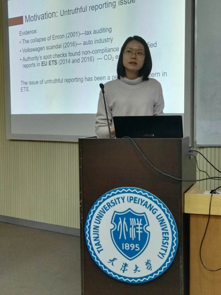 上海科技大学创业与管理学院助理教授申培垚博士的报告围绕如何改进审查机制以提高企业报告信息的真实性展开。当下,基本上所有的碳排放交易机制的审查机制都是基于企业上报自己的CO2排放量,并由第三方审查企业报告和政府随机抽查的形式,即两层的审查机制。但是,由于企业可以自由选择并支付第三方审查费用,加之政府对本区域企业的抽查力度不强,这种审查机制容易存在三方合谋的问题。申教授指出,解决这个问题有两个思路:一是改变三方各自的收益回报,讲真话就给予奖励,讲假话就给予处罚;二是改变审查的结构,即不允许企业选择第三方审查而是随机匹配,同时政府也可以跨区域审查其他地区企业的排放情况,从而实现政府层面的随机匹配——双重随机审查机制。当政府层面的审查动机较弱存在三方合谋时,不诚实的报告很难被发现,使得奖励和惩罚的作用被削减。报告提出激励政府层面的执行力度是解决三方合谋问题的关键。申教授与合作者采用实验室实验的方法,就改变检查结构方面运用三阶段的序列博弈探究双重随机审查机制对企业报告真实性的影响分析。在该博弈中有三个显著特点:一是政府的审查决定是内生的;二是企业和第三方审查之间的合谋是直接的,存在直接互惠关系,但是政府参与合谋是内隐的默契合谋,不会事前观察到企业是否会进行贿赂;三是政府检查的成本较高,不进行检查不会立刻产生损失。在实验中设定两种假设:①政府和第三方审查都轮换(CR);②不完整的轮换——第三方审查轮换(RV)或者政府轮换(RO)。申教授团队的实验结果显示,政府的审查行为没有受到任何轮换机制的影响,但是由政府和第三方审查都轮换(CR)即双重随机审查机制引起的合谋不确定性能显著地减少企业虚假报告的程度、频率以及贿赂情况。这反映出一方面政府作为审查机制的总统筹者在没有其他人审查的情况下,审查结构变化对其行为影响有限;另一方面,即使在审查力度较弱的环境下,双重随机审查机制仍对企业诚实报告的行为体现出显著的促进作用。
