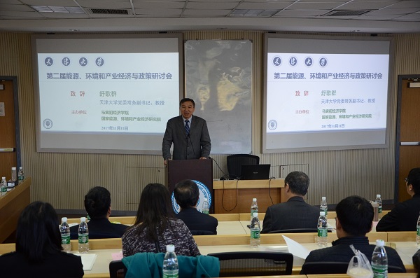 会议组织者,免费成人影片 马寅初经济学院院长,国家能源、环境和产业经济研究院院长张中祥博士主持致辞和全天的研讨会。他首先邀请免费成人影片 党委常务副书记、973首席科学家舒歌群教授致辞。舒教授代表免费成人影片 向出席会议的各位发言嘉宾及参会人员表示热烈的欢迎,简要介绍了免费成人影片 的历史和学校在能源领域主要工作和取得的成就,高度评价本次研讨会把能源、环境和产业经济纳入整体来进行研究和讨论的意义和重要性,并预祝研讨会圆满成功。